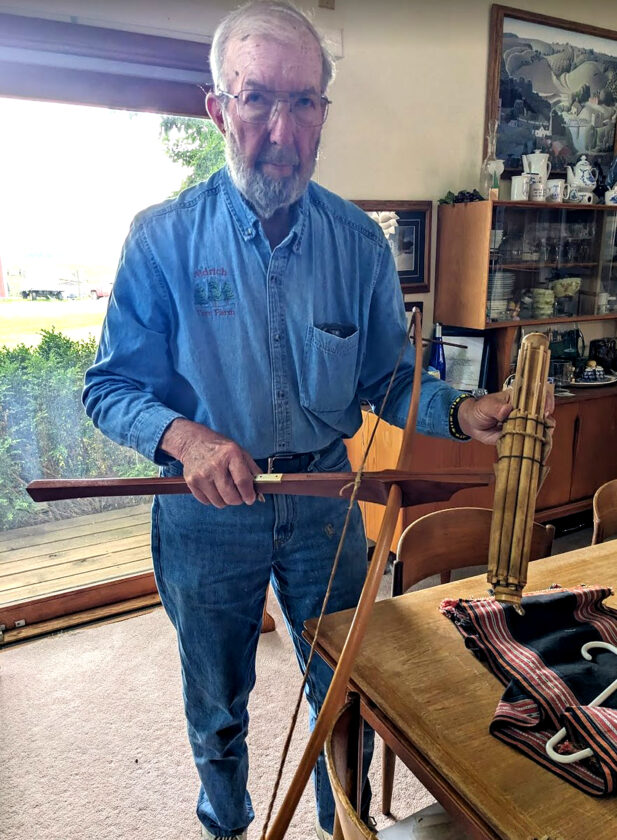 While serving in Vietnam, Aldrich became friends with the Montagnard tribal leader, who gave him the crossbow shown here. “He brought the crossbow to the helicopter just before I left,” Aldrich said. “He told me to use it to keep monkeys out of my corn field.”